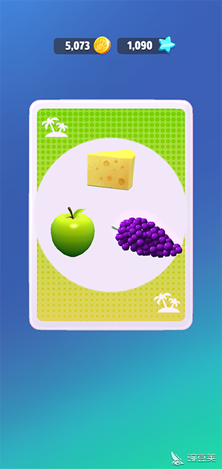 我们先开始难度系数最小的简单级拼图。当我们拼图成功了,就有一个篮子给我们,我们点开那个篮子,篮子里面也有卡片,卡片里也有食物。而且是比较丰厚的食物。下图是小编获取的,有奶酪,苹果和葡萄。