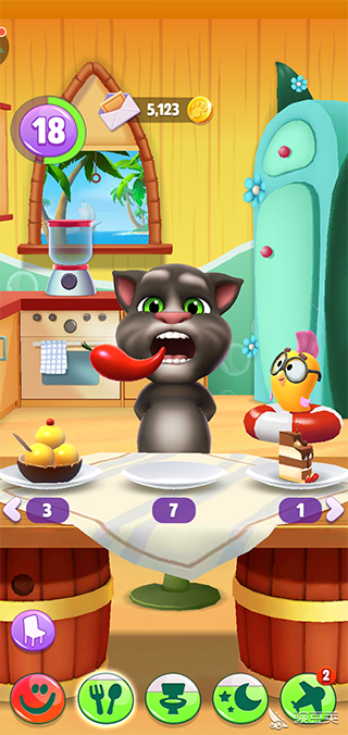 点击这个按键会带汤姆猫到餐厅,桌子上摆着的东西,玩家可以喂给我们汤姆哦。