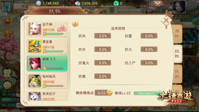 2、法术系抗性,包括风、雷、水、火、毒、鬼火、三尸。