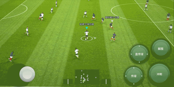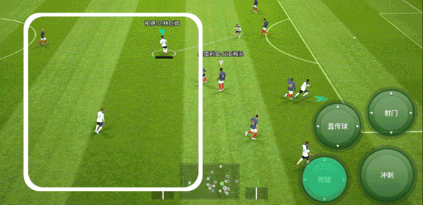手动前插按下传球键后,向任意方向轻拂画面左侧,传球队员会沿直线向对方球门快速插上,这时可以打出二过一配合,而当球员拥有【单触传球】时,球员间的快速传接会更加精准
