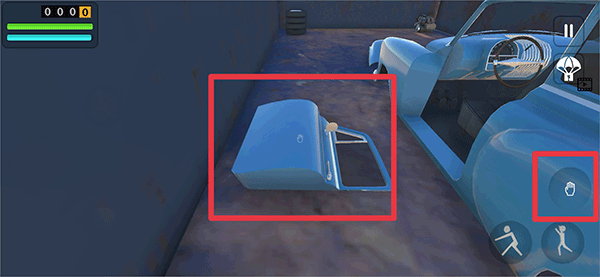 1、在游戏中玩家需要先将汽车上的所有零件装备在车上,点击手掌按钮拾取
