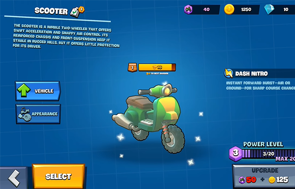 4、造型千变万化的赛车任你自由驰骋,炫酷的尾焰自由搭配,打造专属战车。
