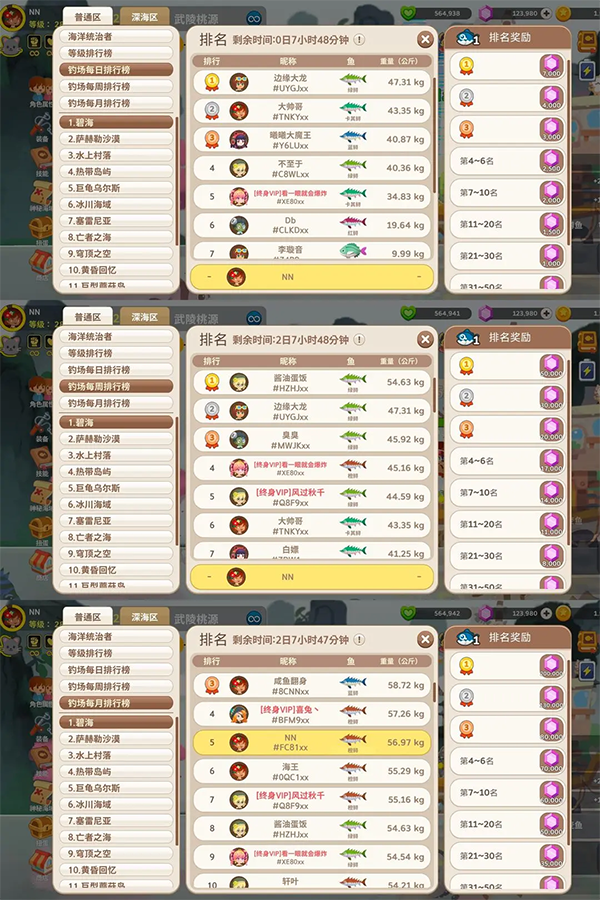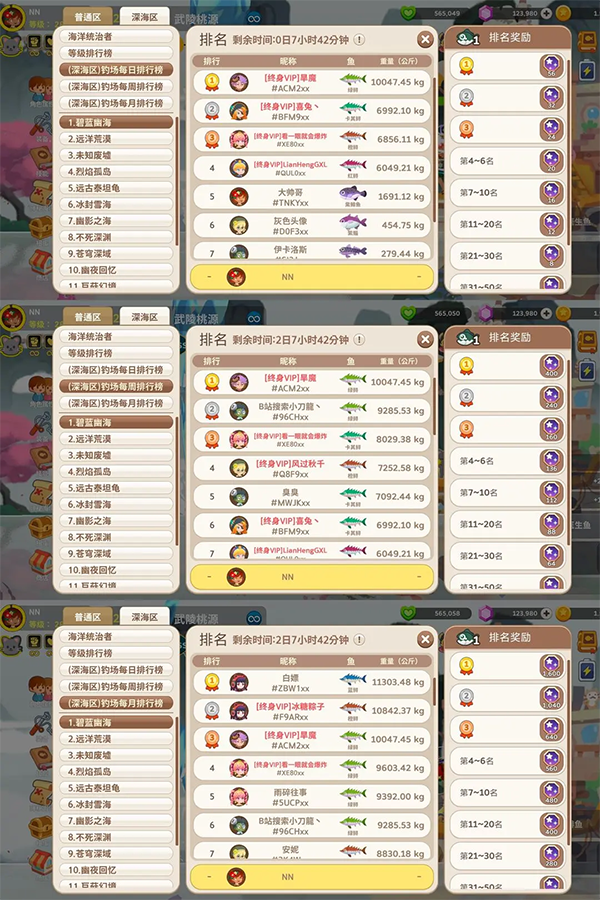可以看到每个周期的榜都会给不同量的钻石,这是最主要的钻石获取渠道之一(还有一个是每周三次的钻石氪金礼包)而深海去需要将普通版的这张图打完才会解锁,深海区的奖励为夜空指南。