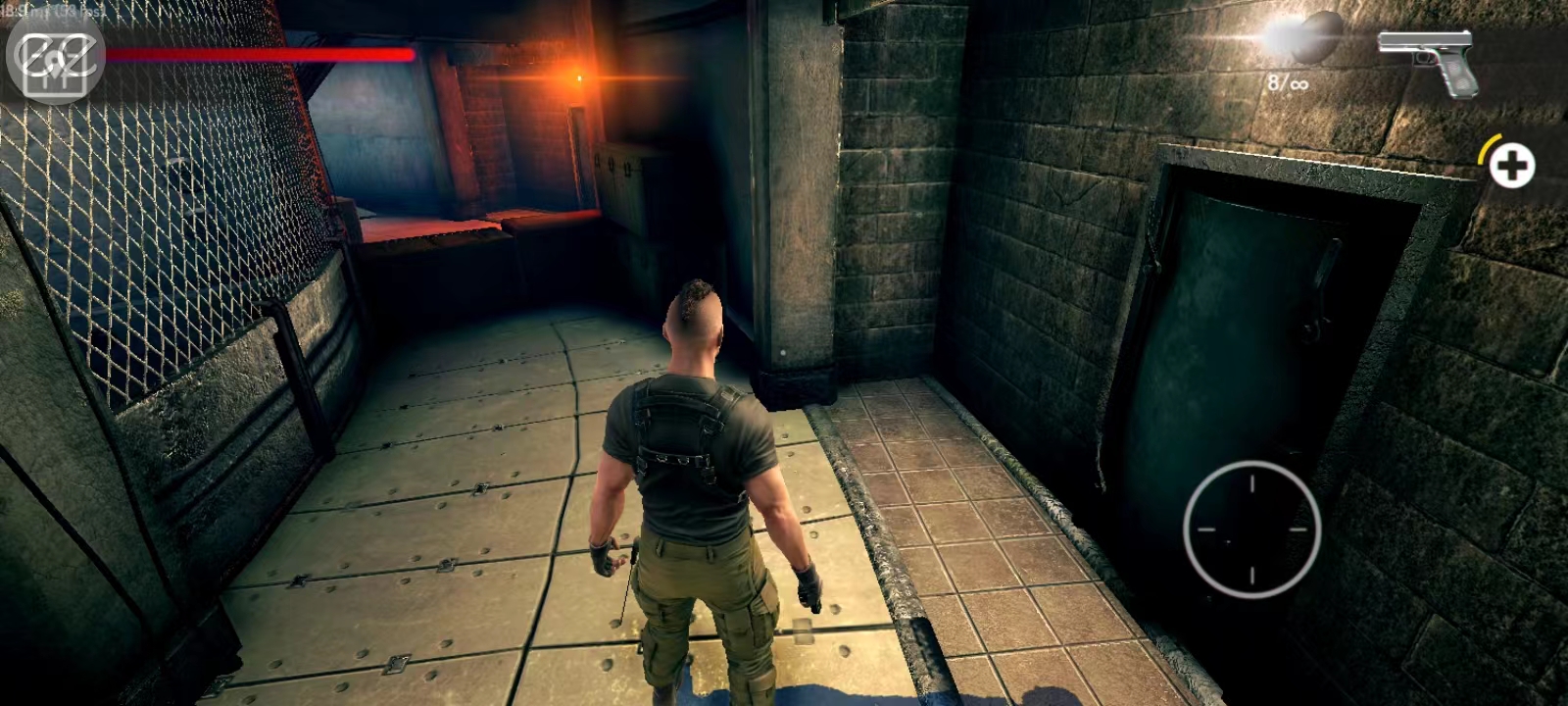 5、动画结束以后,玩家就会一个小房间,滑动左边的空白处可以控制角色的移动,右边则负责瞄准射击;首先,走到门口处;