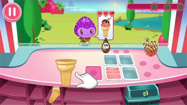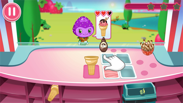 3、在每个关卡中,你需要根据顾客的口味制作出美味可口的冰激凌;为了满足客户的要求,你需要争分夺秒地填满客户的心;