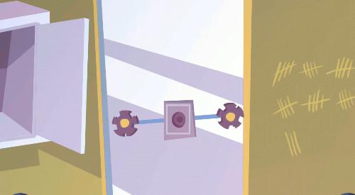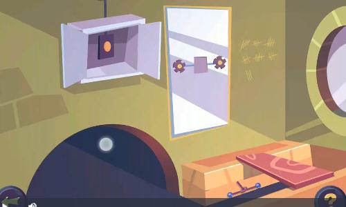 转动插梢,镜子下降,露出扶梯,此关通过。