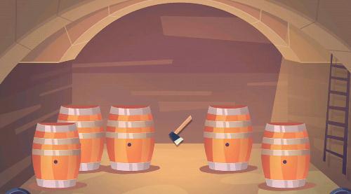 沿着梯子下去,把桶子搬开,获得斧头一把。