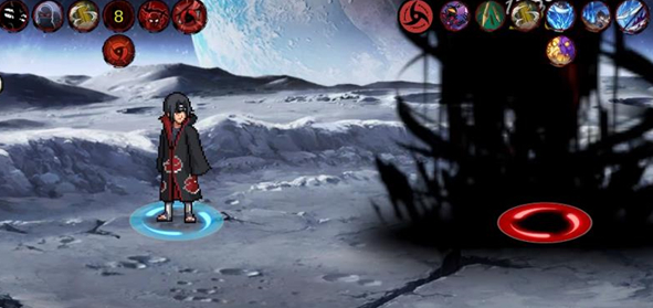 6、奥义月读,结印将敌人拉进幻术空间,生成大量分身刀刺攻击,最后月亮砸下毁灭一切。