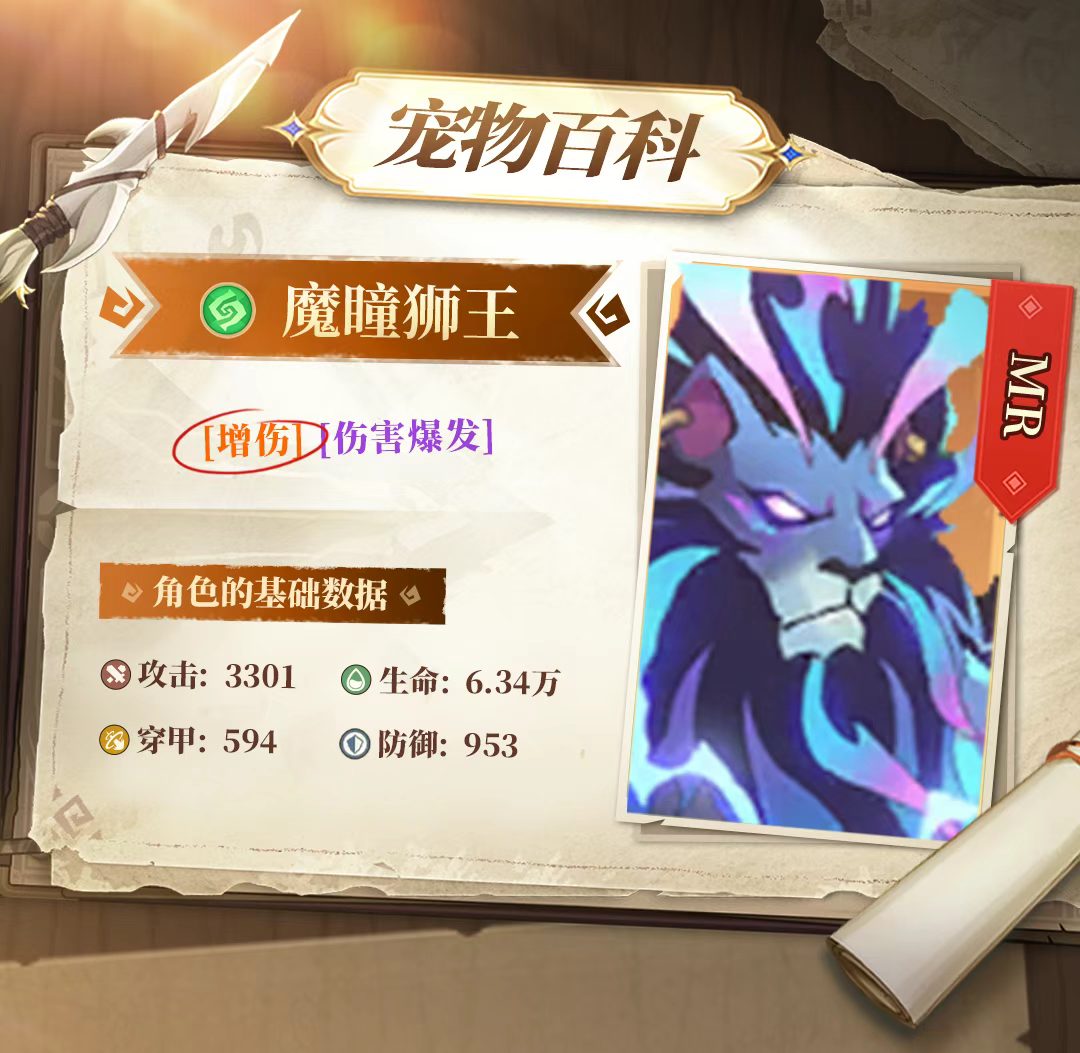 魔瞳狮王,原本是邪眸之地的统治者,但却被叛徒驱逐至幻想大陆。身旁的两个魔瞳恐怖慑人,喵斯看到都不禁打颤!