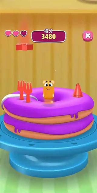 要小心障碍哦,而且有些还不是静止的障碍,是会动弹的叉子。有时还会遇到两个静止的障碍物堵到一起,把中间通道围了起来。但是解决的方法很简单,只需要你抓住时机然后快速旋转到通道即可。