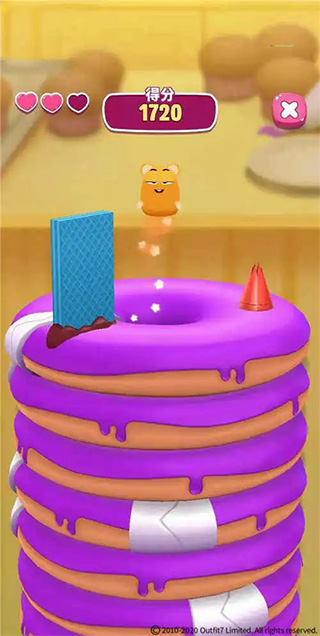 甜甜圈旋转是由五只小宠物联合起来的,每一只小宠通关后就会交接给另一只小宠。