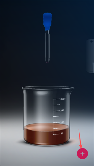滑动屏幕右上侧的“+”或“-”按钮,设置要倒入烧杯中的试剂容量。