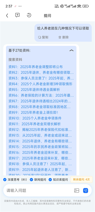 AI提问:全面接入Deepseek模型,联网提问+个人知识库提问,满足各类场景的知识问答和资料检索需求,实现AI回答的个性化、深度化、准确性。