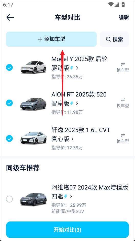 2、选择你想要对比的第一款车型,进入该车的详情页;