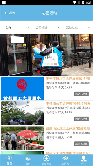 首都职工志愿服务app下载安卓版是一款非常不错的志愿者服务软件平台,在这里面可以查询到首都志愿者服务的一些工作内容,如果你有想法想去做一个志愿者,想去做一些有爱心的义工,这里是很不错的,有很多义工服务等着你,参加完之后,也是可以有实物奖励的,在这里能够看到志愿者工会的最新公告,需要的话可以下载看看。