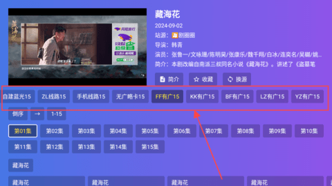 3、任意选择一个感兴趣的剧集,点击即可播放,这里以“藏海花”为例。