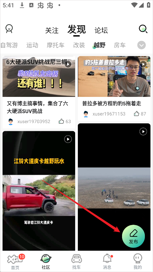 2、在社区页面中找到“发布”按钮,进入编辑界面。