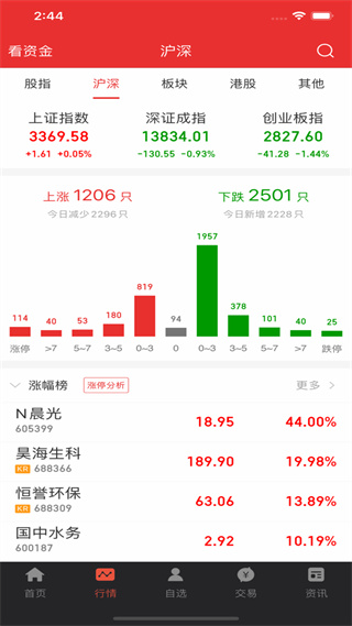 1、首页新增数据中心、投资参考模块,强弱指数、龙虎榜、涨跌风向标、交易提示帮助您更好的了解大盘、热门板块及个股动向;