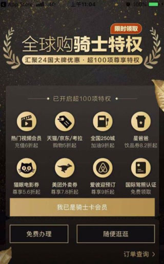 3、全球购骑士特权:聚合24国品牌资源,专享会员专属折扣与特权。
