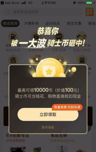 2、骑士专享购物优惠:精选天猫、京东、淘宝、考拉等平台优质商品。